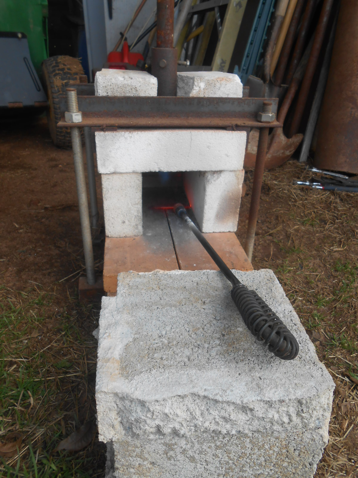 We have a metal disbudding iron that we heat to about 1000º and I hold each squirming goat as we apply about a 6-8 second burn on each horn. They are not happy and it really hurts my heart, but it is for their own good.