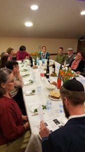 and then let us know they appreciated our visit but it was time for us to go. We gave warm handshakes and greetings, then as we left Jossi, from Switzerland, led us in Ose Shalom! The table responded warmly to our singing as we exited and walked to Tzemach’s home for our own Pesach observance.